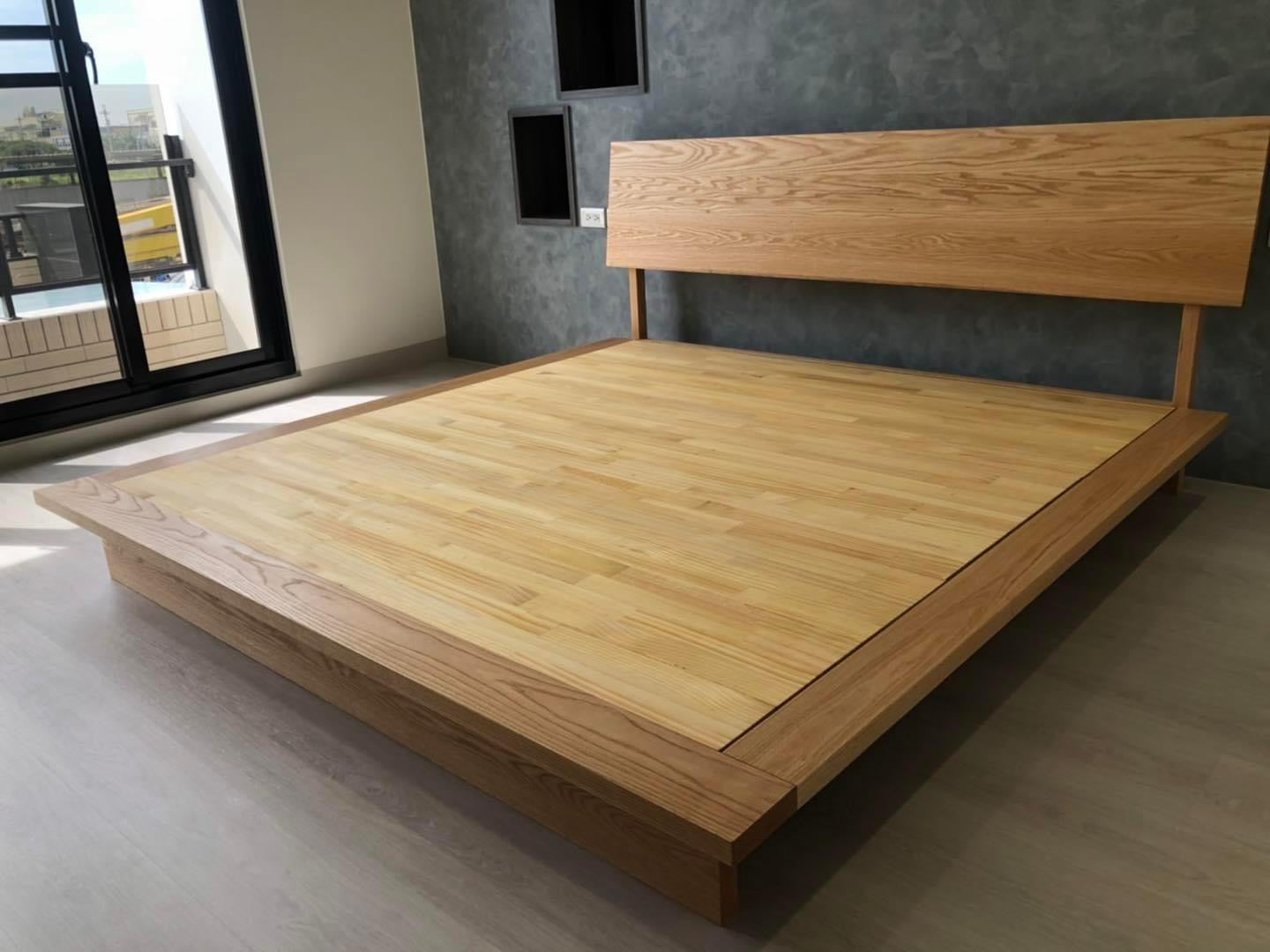 七尺 特大雙人床 King size / 北美白橡木 / 床墊平鋪 含床頭板 - $40,000