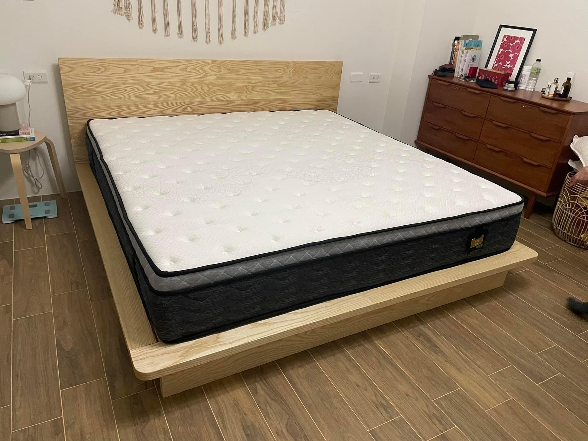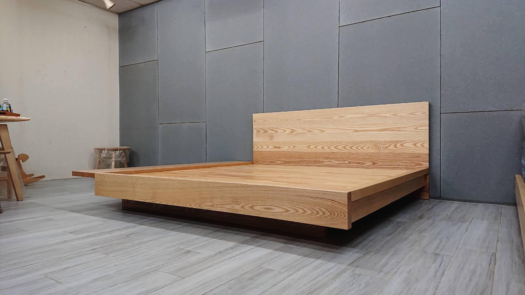 七尺 特大雙人床 King size / 北美梣木_原木色 / 床墊 平鋪 - $32,000